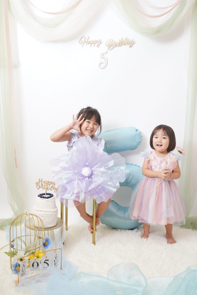 白色背景には装飾の貼り付けができませんが、フラワーガーランドやチュール装飾もさせて頂けます