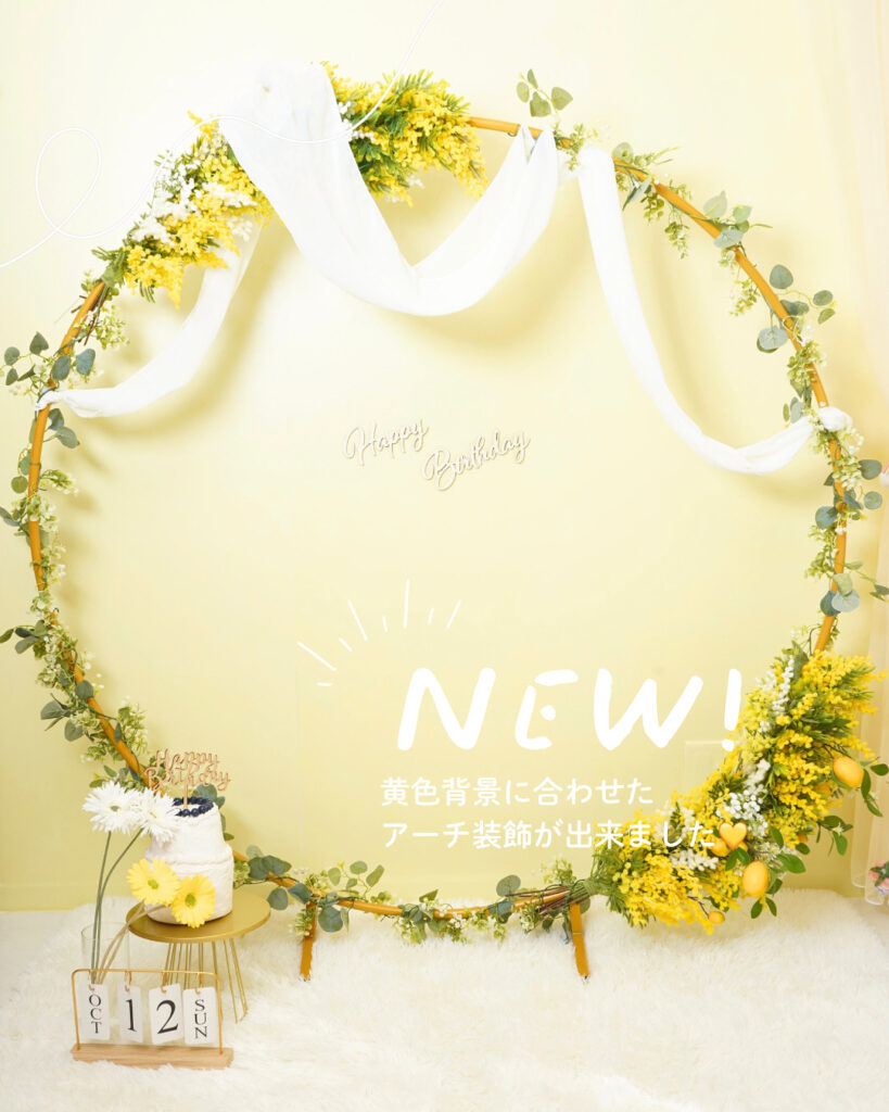 背景の後ろに装飾を加えることもできますし、アーチを外してシンプルに撮影することも可能です☺️