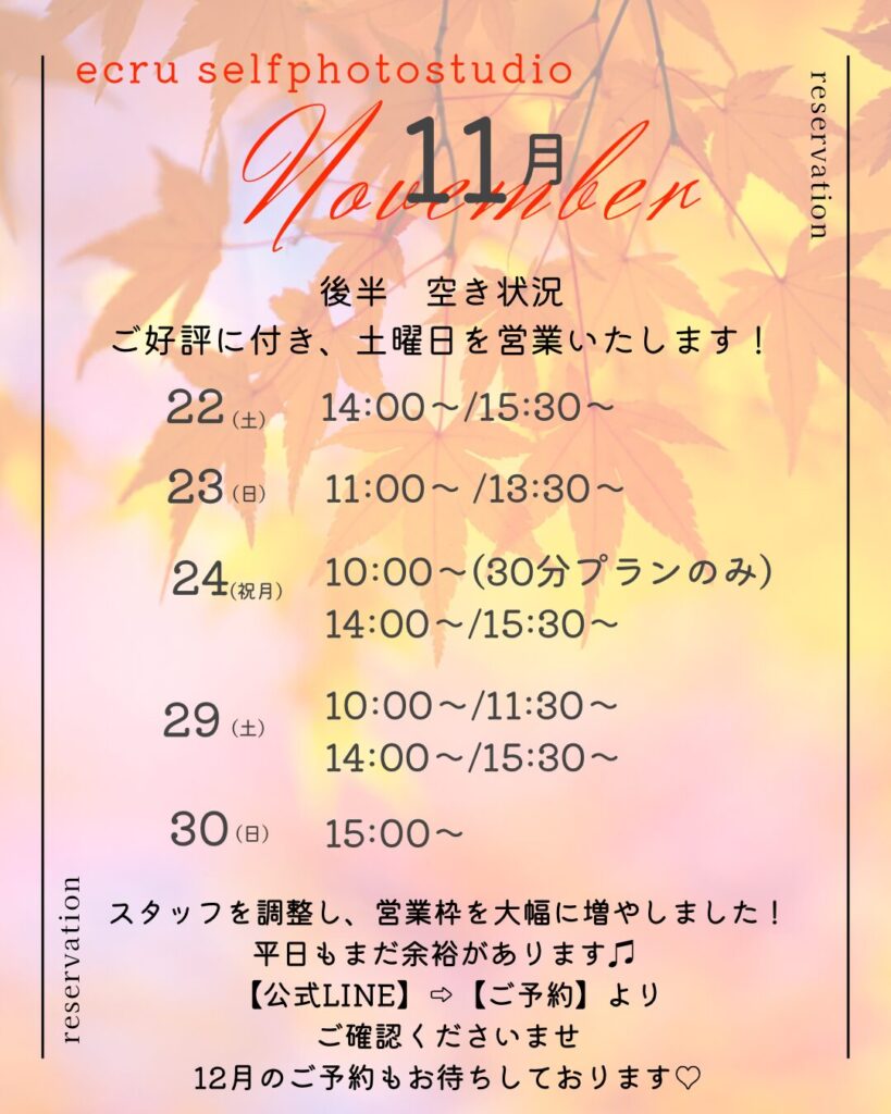 11月は土曜日の営業に加えて、日・祝の枠も増やしました!