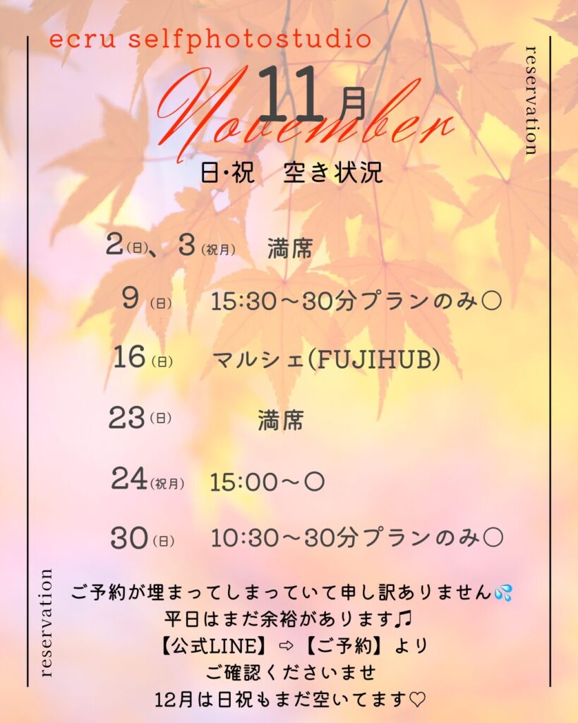 11月の日・祝は、ありがたいことにほとんど埋まっております🙇♀️