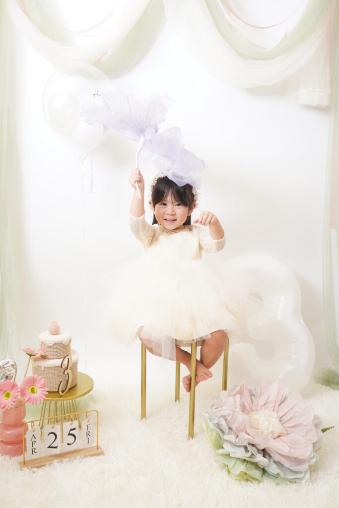 背景に装飾は頂けませんが、笑顔や小物がより映えます。